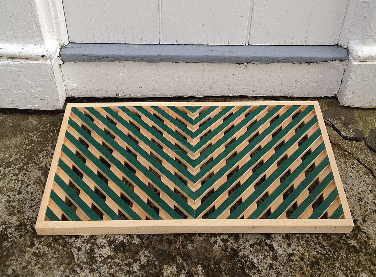 WOODEN DOORMATS FOR ALL-WEATHER USE T0 EFFECTIVELY SCRAPE DIRT, BEACH SAND, MUD, WATER AND SNOW FROM SHOES AND BOOTS, SINCE 1986